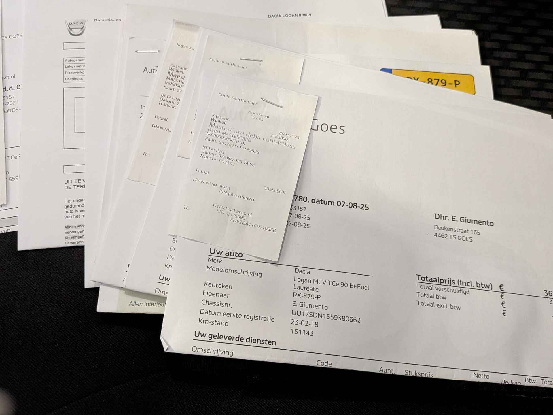 Aflevering met nieuwe APK € 250,-