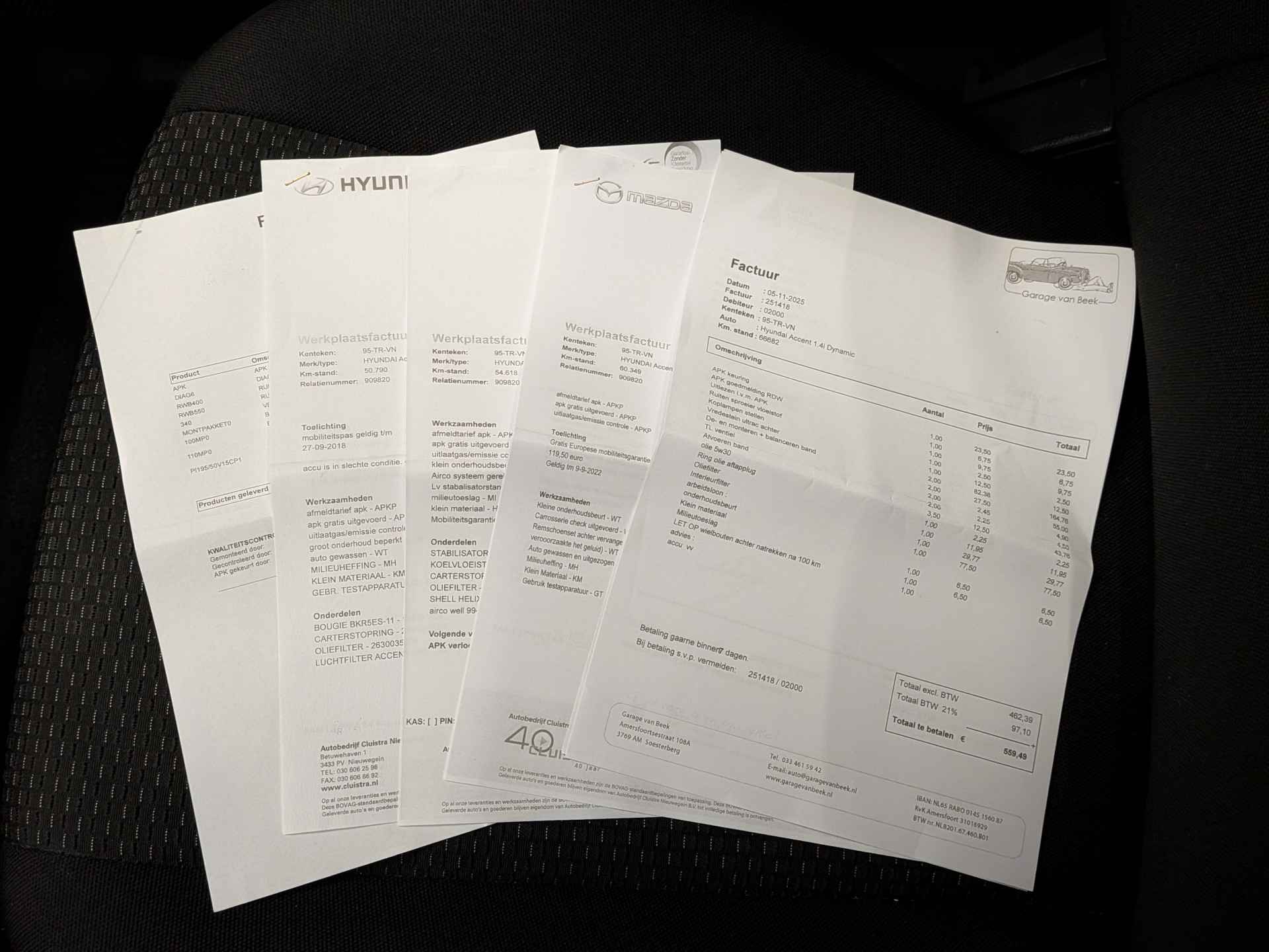 Aflevering met nieuwe APK € 250,-