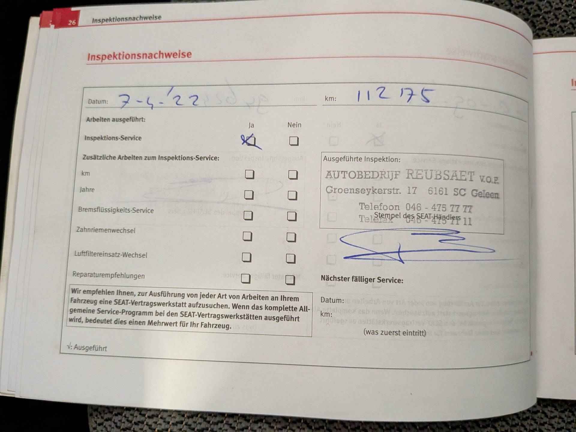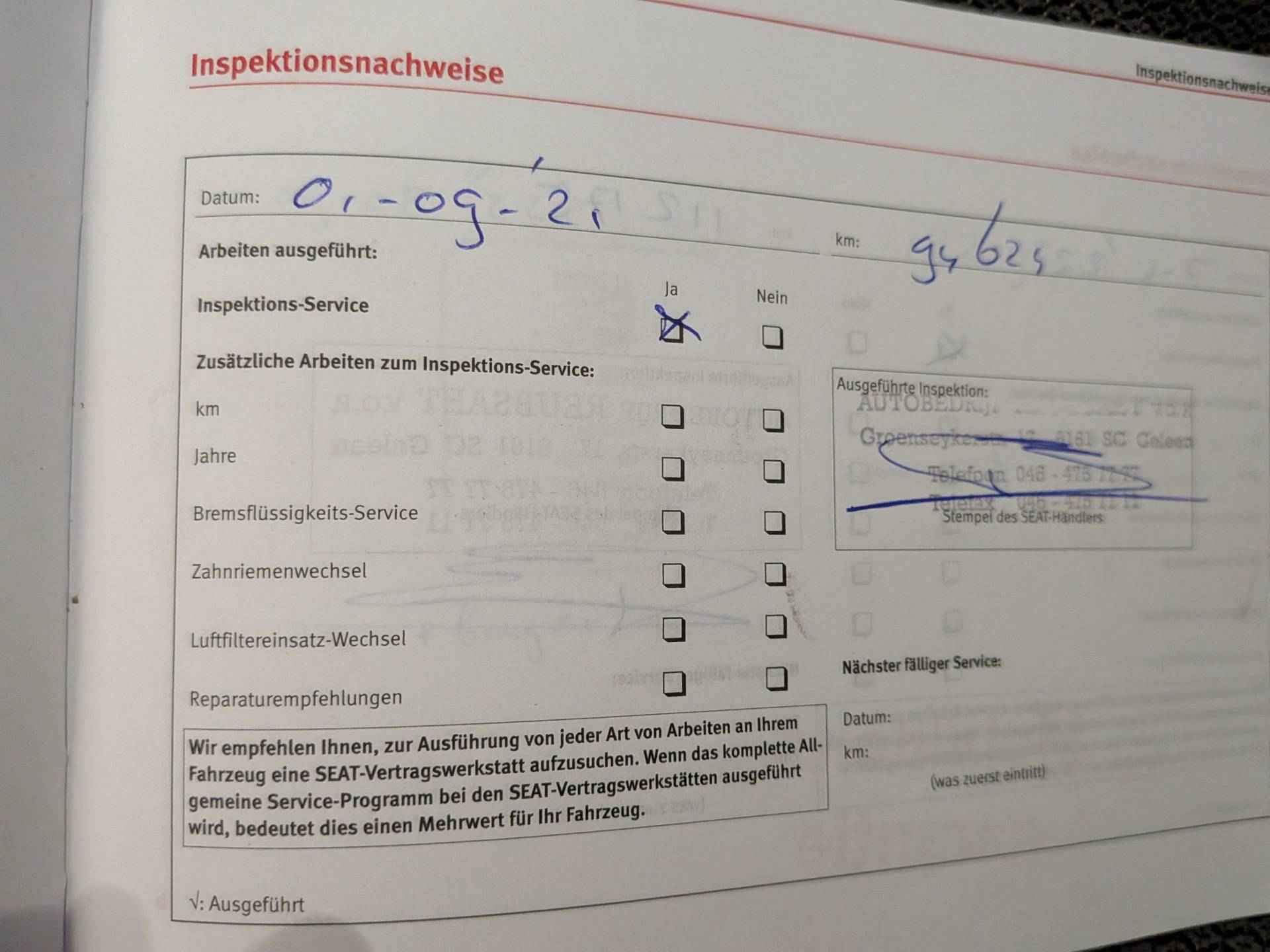 • Onderhoudsboekje(s) aanwezig