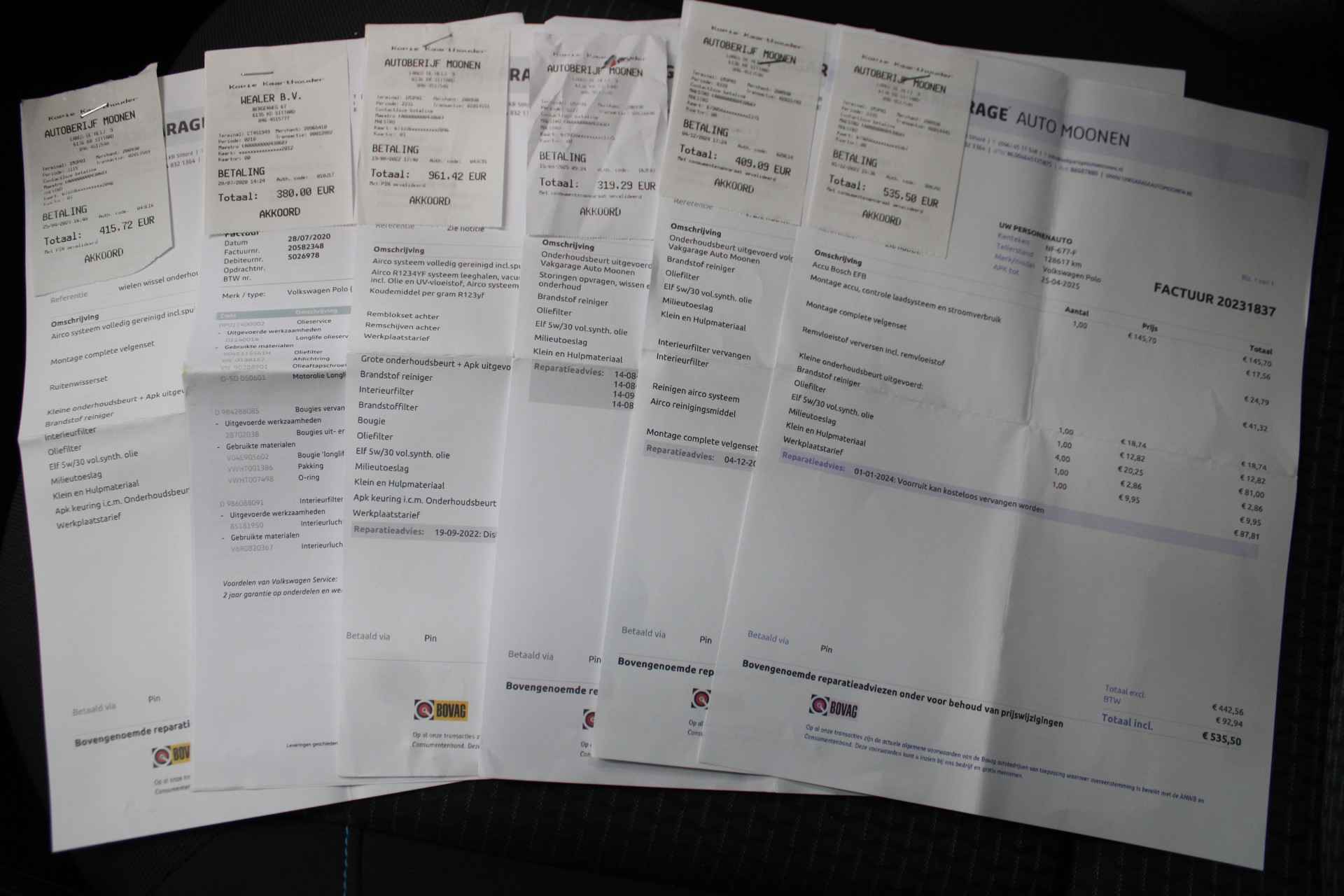 Aflevering met nieuwe APK € 250,-